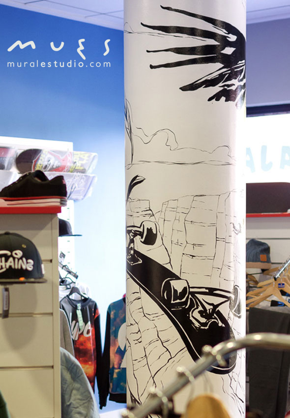 - Primero le visitaremos allí donde usted quiera ubicar el mural. Tomaremos buena nota de que es lo que usted quiere en cuanto a motivos, colores, influencias etc. Estudiaremos el área y su entorno para que el futuro diseño se adapte perfectamente a sus necesidades y a las peculiaridades del lugar.