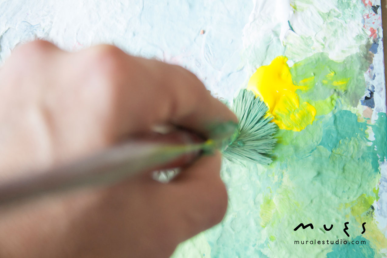 Para los murales pintados en interior utilizamos tanto pigmentos como medios de la mejor calidad del mercado. Para los murales pintados en exteriores ponemos una especial atención a que los materiales sean los mas idóneos para que la pintura perdure el máximo numero de años posible en perfectas condiciones.